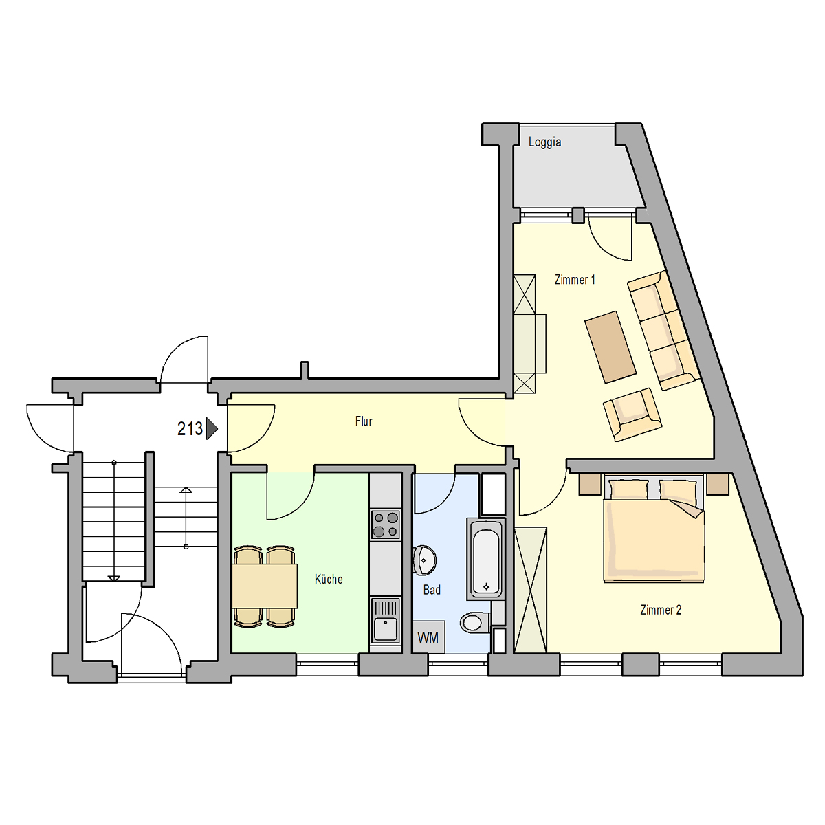 2 Zimmer Wohnung mit Balkon im EG