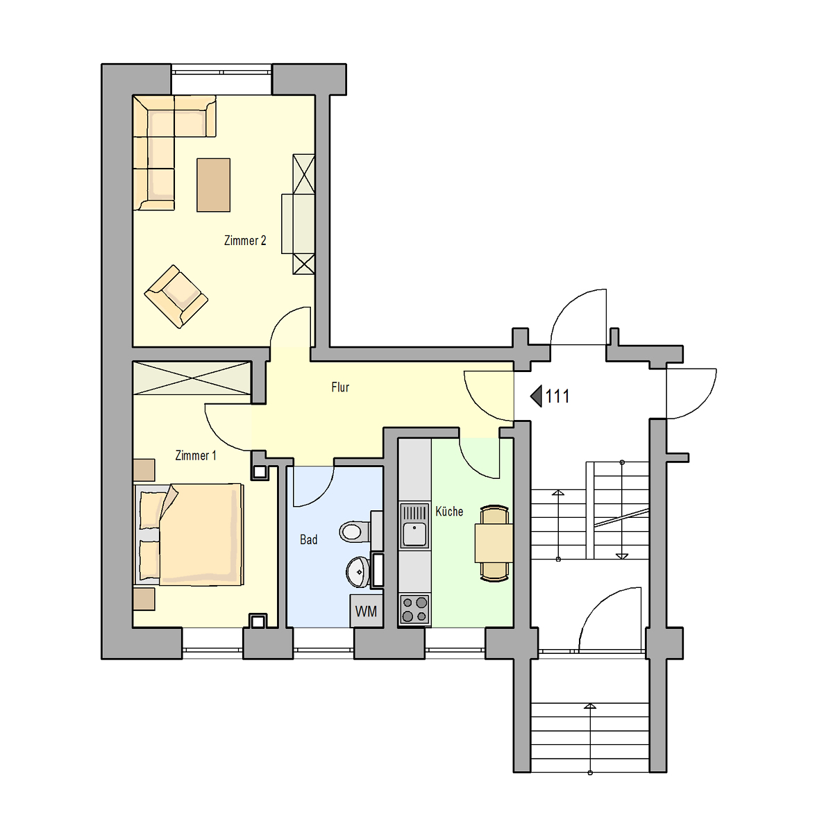 2-Raum Wohnung im EG mit Dusche
