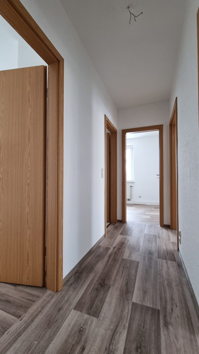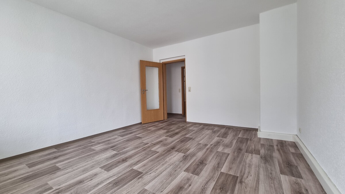 Renovierte 3-Raum-Wohnung im 1.OG, Bodenbelag, Tageslichtbad mit Badewanne, großer Balkon, Keller, Bodenanteil